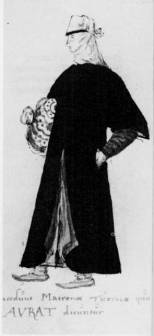 over shoulders and back and is swathed in striped or plain turbans.” (Scarce