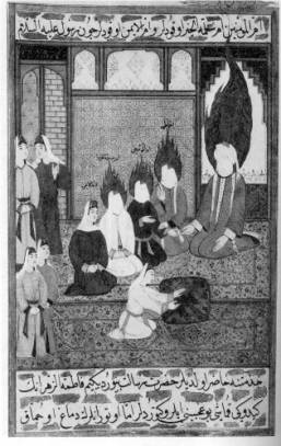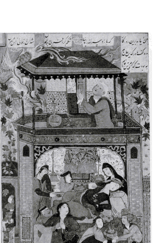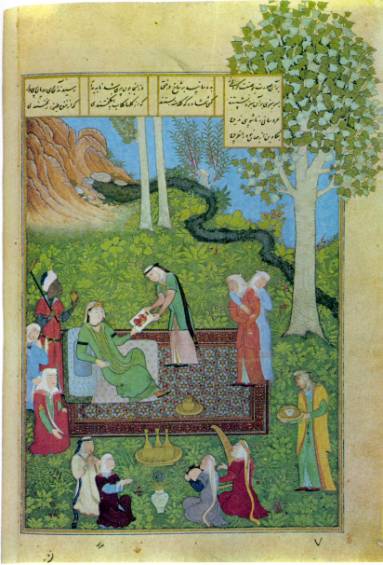 These are only a few paintings which feature the items mentioned. For more information, see the sources listed below, or perform an Internet search for Persian miniatures, etc.
