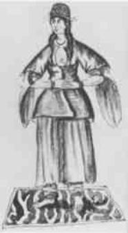 picture to the left pictures a Turkish woman wearing a yelik and large